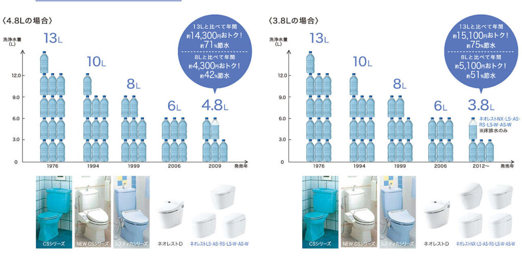 一方、現在の節水型トイレでは、
