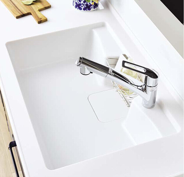 耐久性と掃除のしやすさを兼ね備えた アクリル人造大理石シンク が標準装備されています。